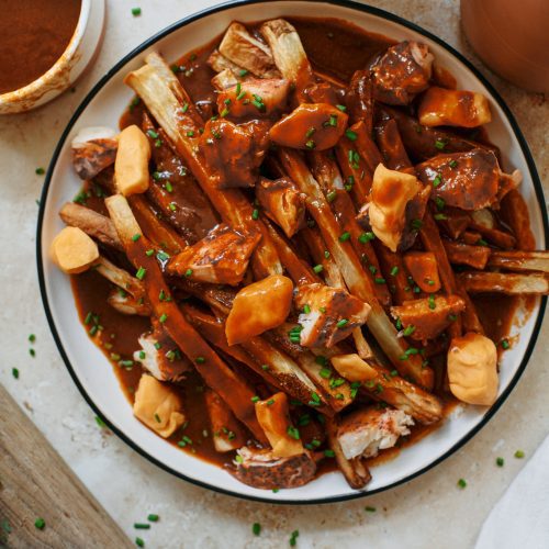 Poutine originated in the 1950s in Quebec, Canada and is a super iconic comfort food across the country. It typically consists of french fries, cheese curds and gravy. You’ll find a variety of twists and takes on the infamous poutine across Canada but today we’re making a version with lobster!