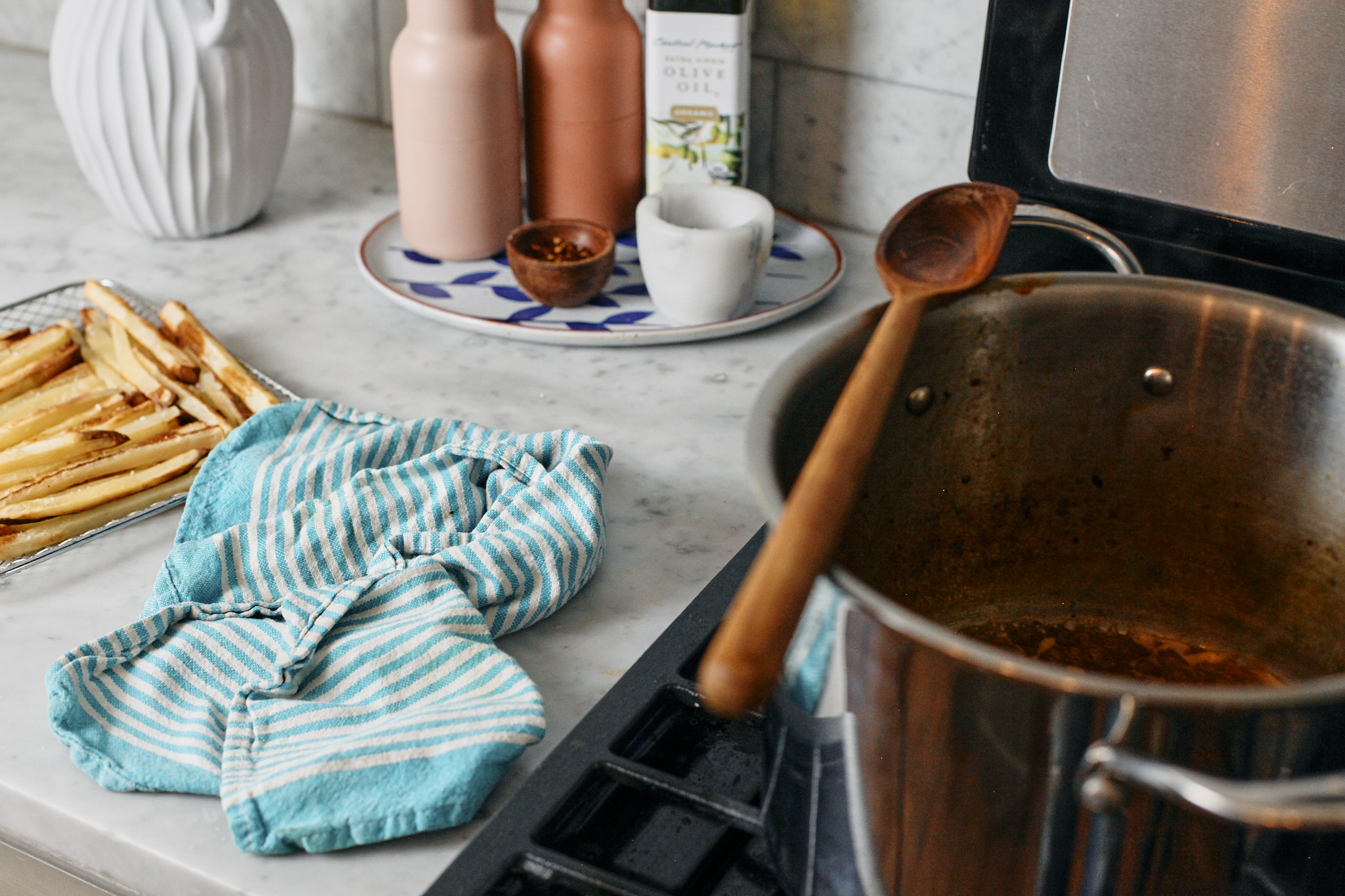 Making the fries for the Lobster Poutine